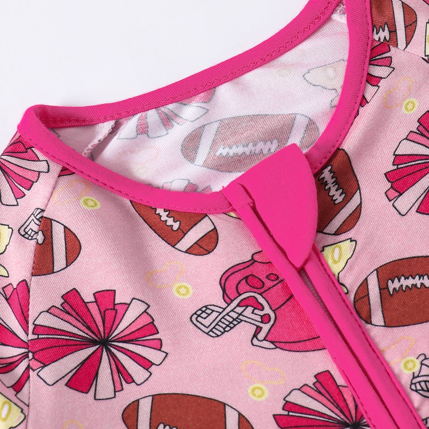 Rugby on the go with our Baby Bamboo Pajamas! These convertible footie pajamas feature a playful rugby print and a convenient zipper for easy diaper changes. Made from soft, eco-friendly bamboo, your little one will stay cozy and stylish all day long. Try them now!