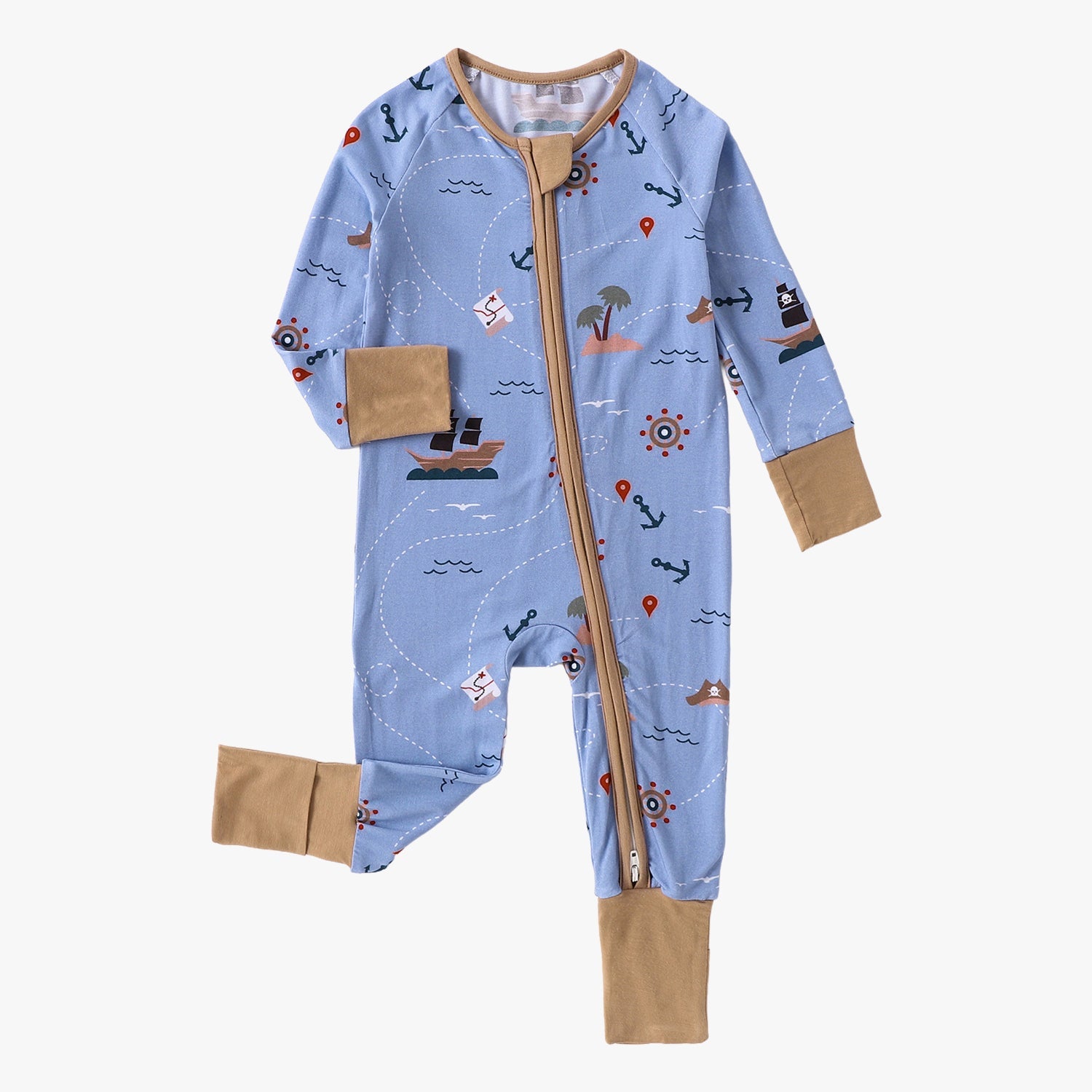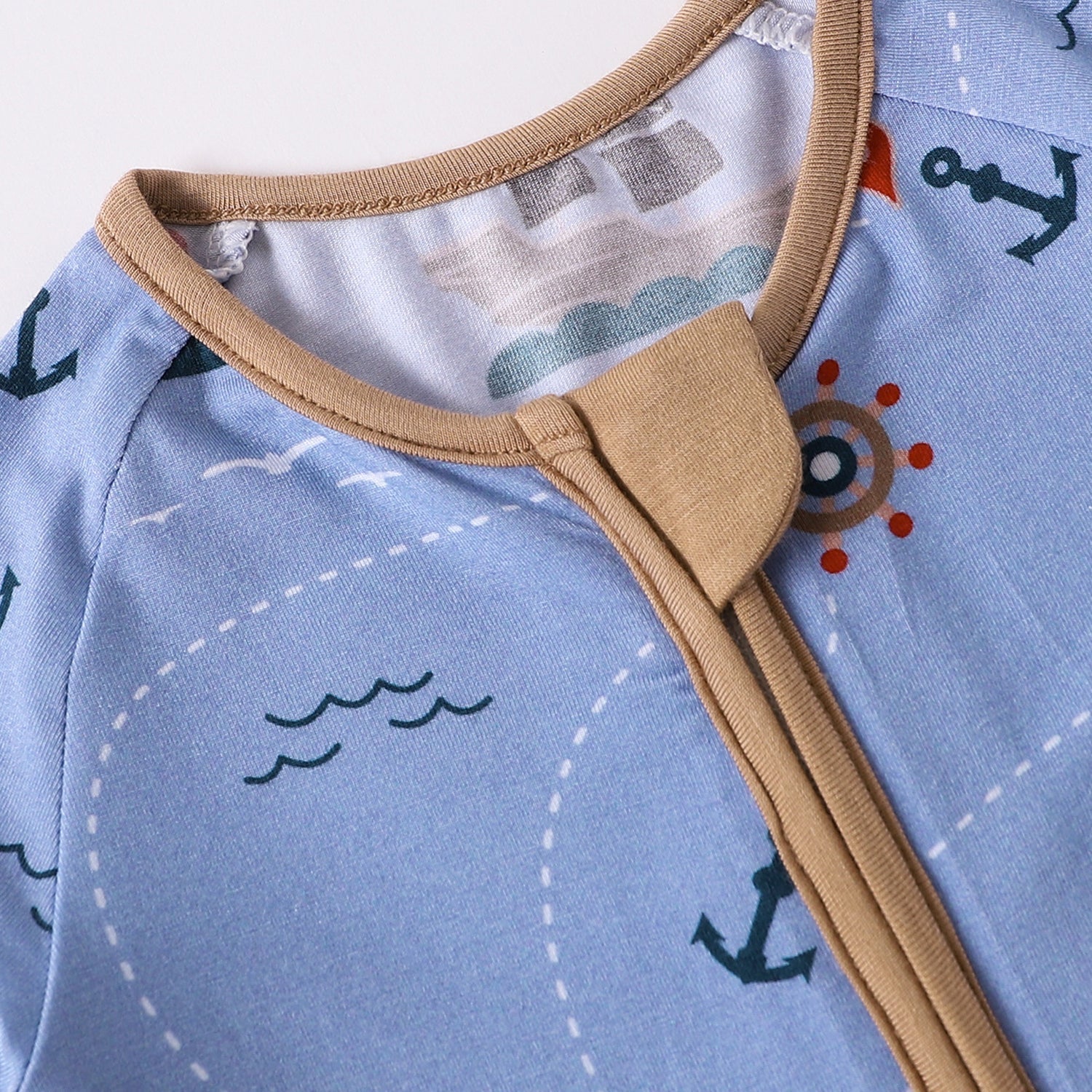 Bamboo Baby Pajamas Convertible Zipper Footie Pajamas Romper Anchor Print