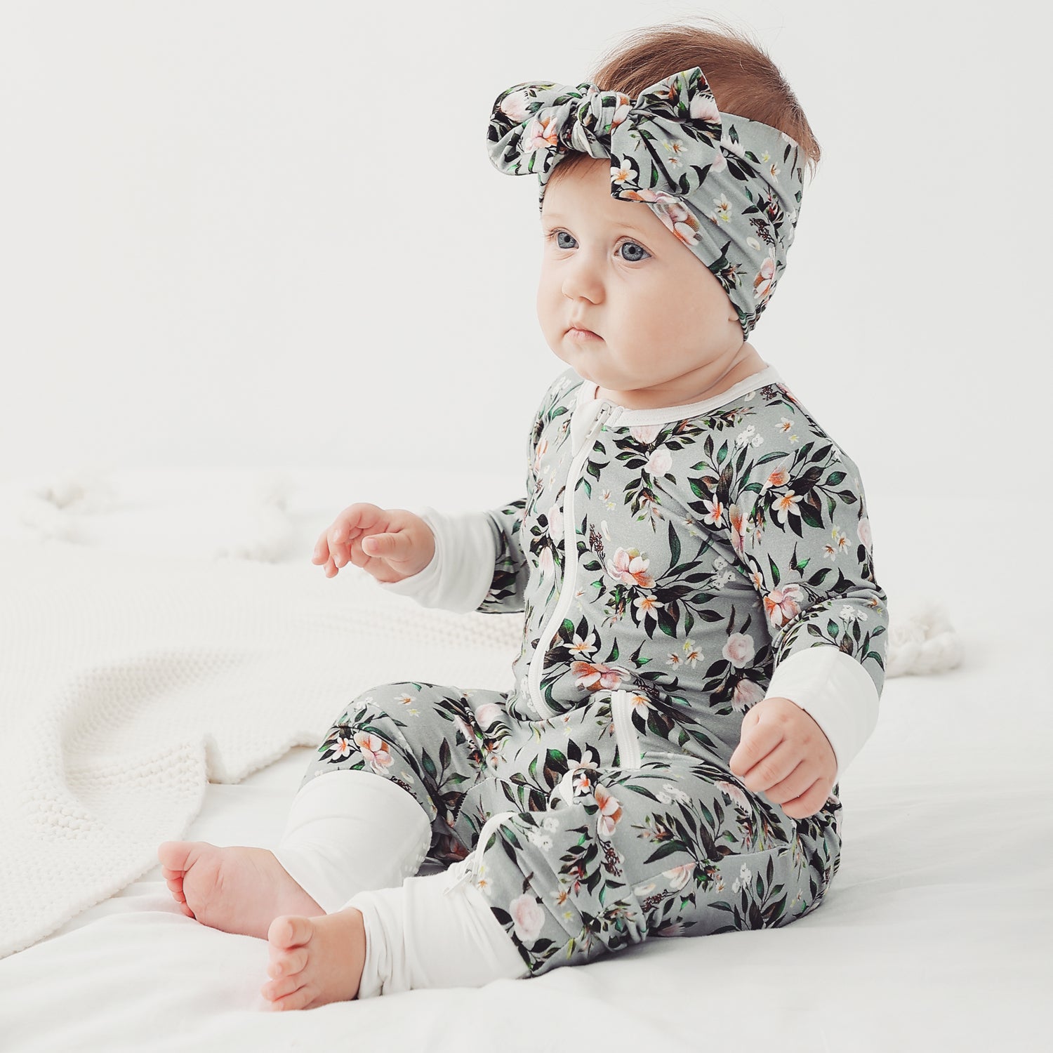 This long-sleeved bamboo baby pajamas convertible zipper footie pajamas floral print romper provides the best sleep for babies.