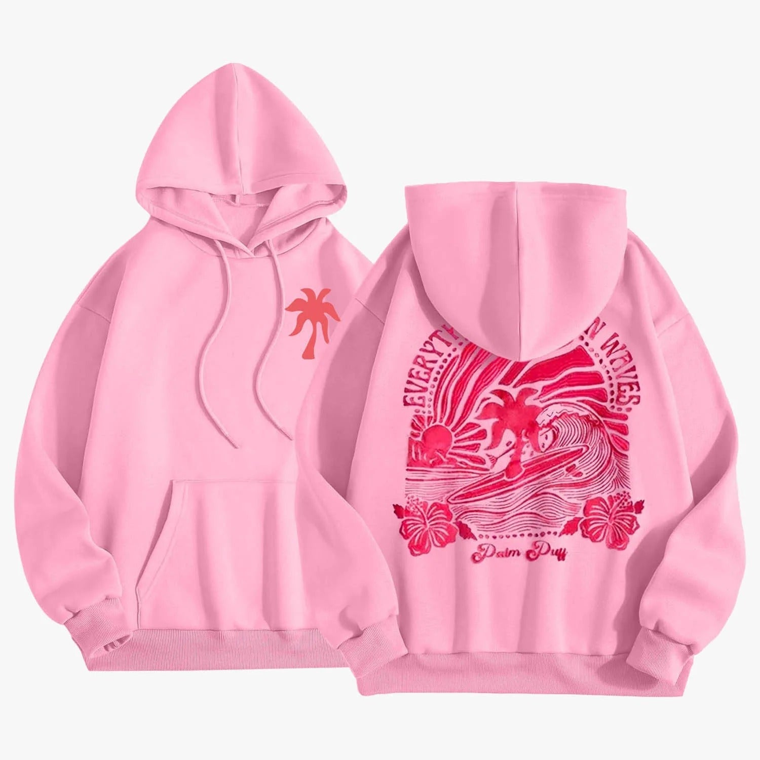 Pink Palm Puff Everything Comes in Waves Oversized Graphic Hoodie